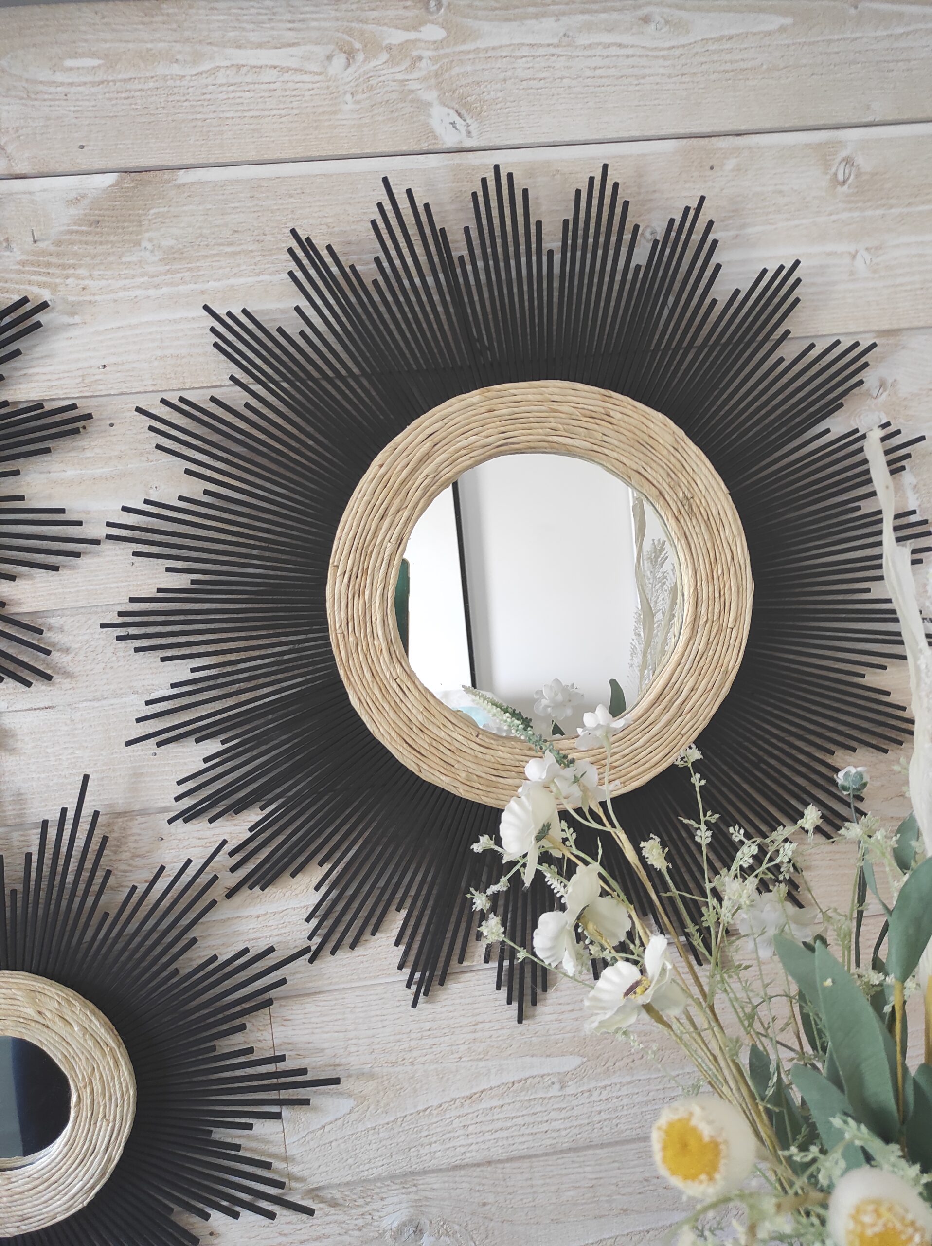 Trio de miroirs en bois naturel teinté de noir, raffiné, délicat et chic pour votre intérieur déco.